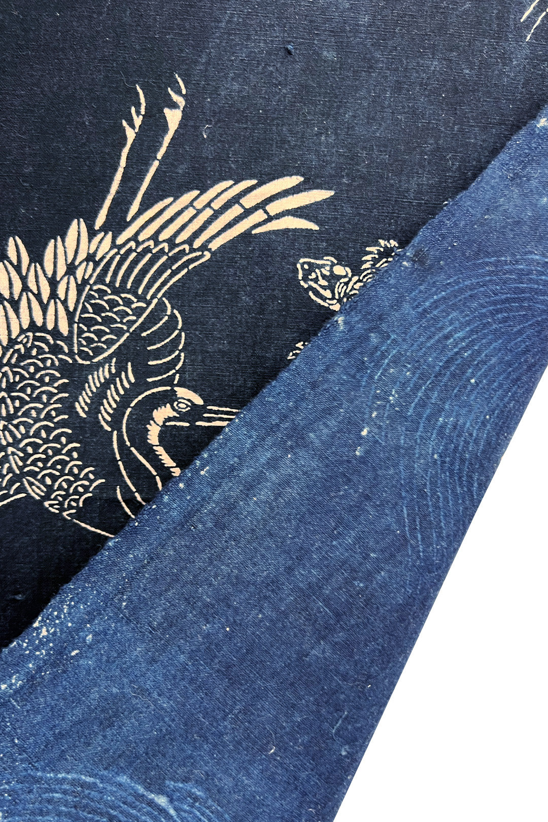 Katazome is a batik-like method of painting using a paste, then dying the piece, revealing the design once the paste is washed away. The process has to be repeated for each color.