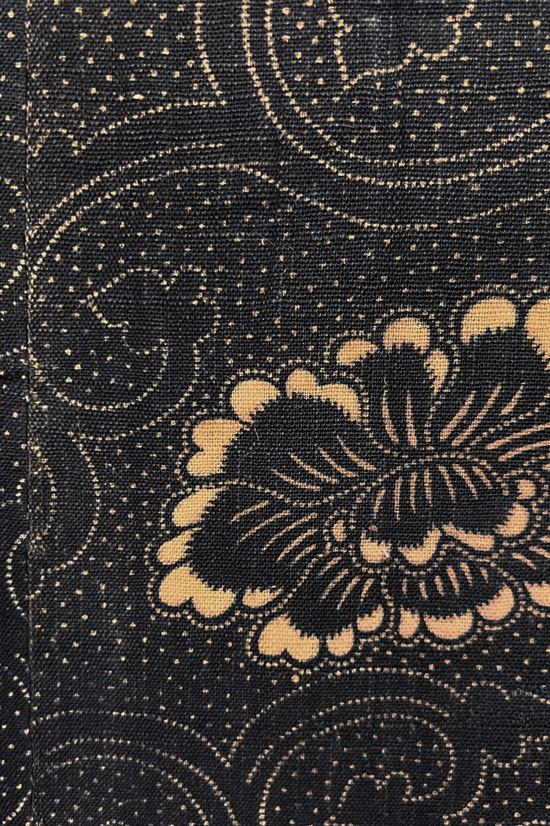 Katazome is a batik-like method of painting using a paste, then dying the piece, revealing the design once the paste is washed away. This piece is comprised of three floral panels sewn together.