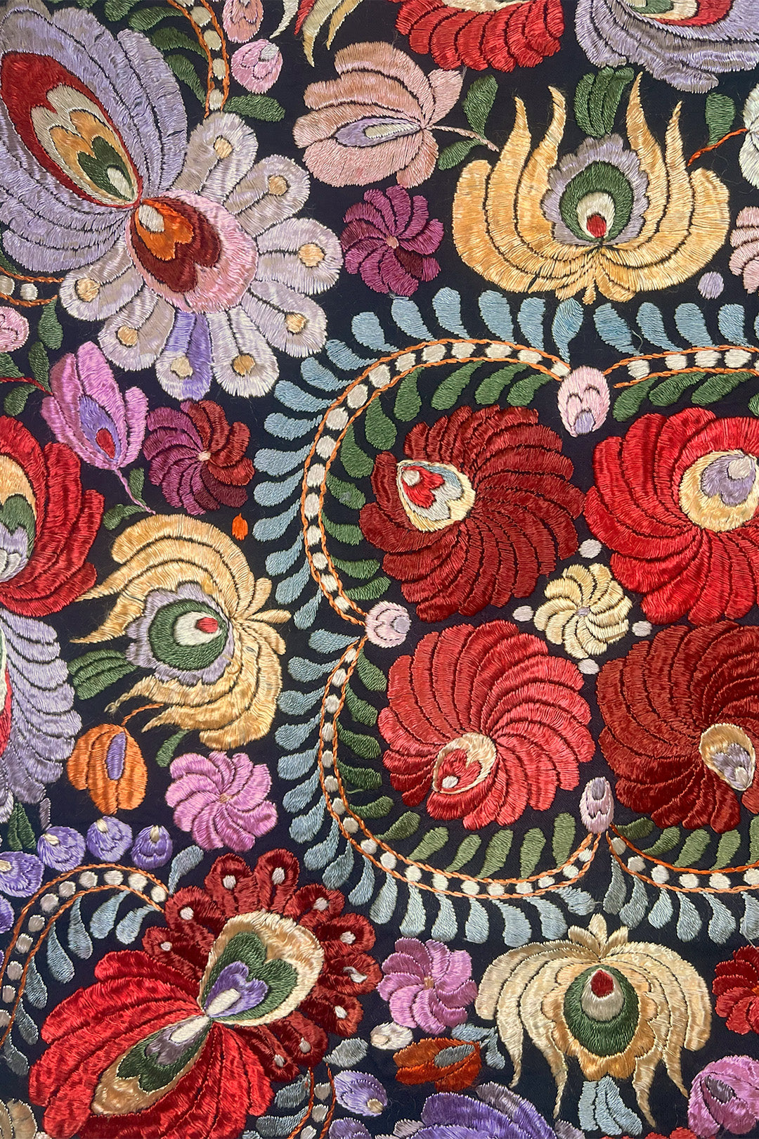 Matyó folk art began in 19th century Matyóföld region, Hungary. The designs traditionally feature signature florals, mostly roses, covering most of the ground.